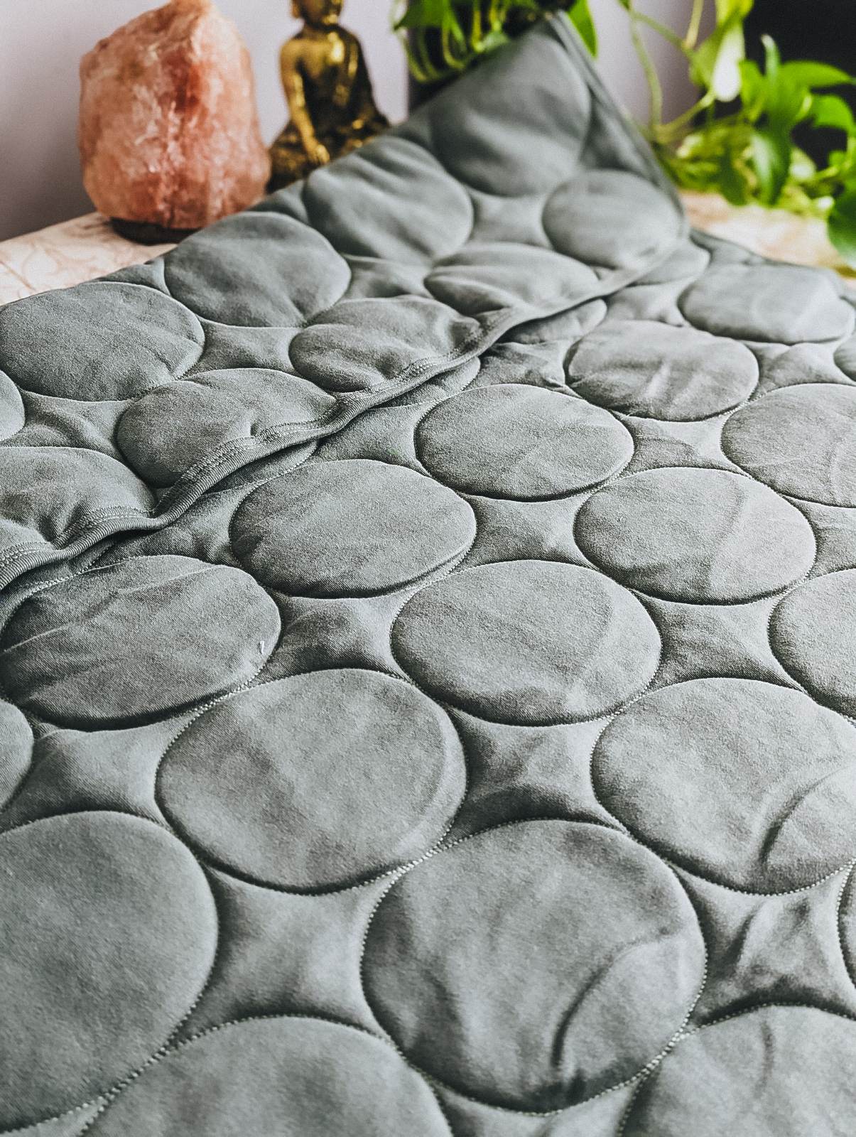 NWT quilt, about 48"x36", in an organic cotton material in grey toned green colour called Agave